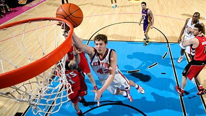 Adam Morrison finished with 16 points for the rookies. Andrea Bargnani, the No. 1 overall pick, had 12 on 5-for-11 shooting.